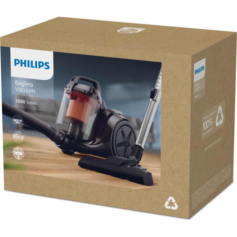 summary: Philips 1000 series XB1142/10. Maximum input power: 800 W. Type: Cylinder vacuum, Cleaning type: Dry, Dust container type: Bagless, Dust capacity: 1.3 L. Vacuum air filtering: HEPA, Dirt separating method: Cyclonic, Noise level: 78 dB. Product colour: Black