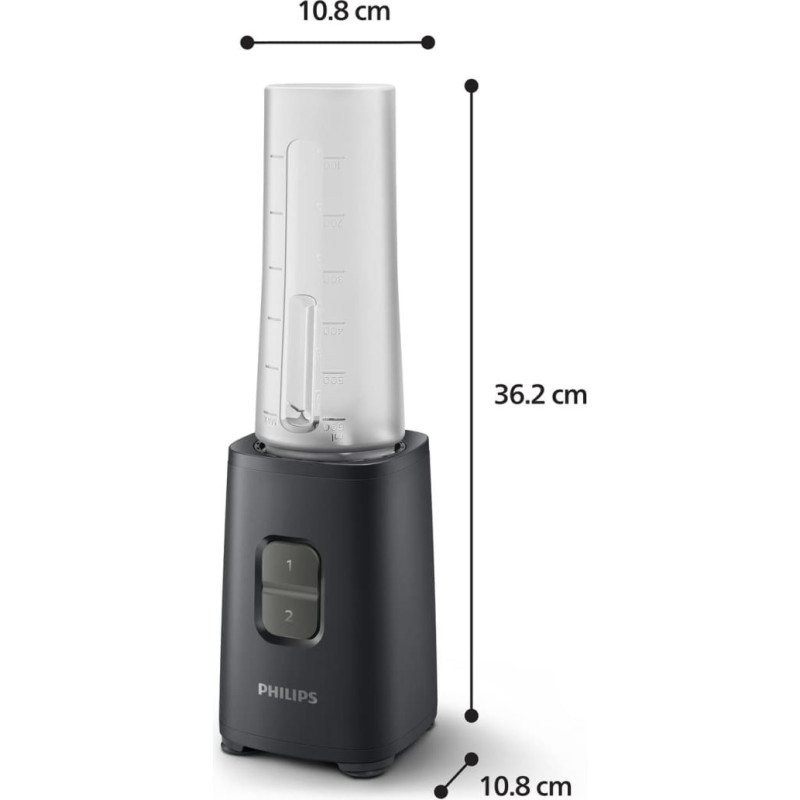 summary: Philips HR2040/00. Type: Tabletop blender, Cord length: 0.85 m. Rotational speed (max): 25000 RPM, Control type: Buttons. Housing material: Metal, Blade material: Stainless steel, Material jar(s): PP. Power: 350 W, Power source: AC, AC input voltage: 230 V. Width: 108 mm, Depth: 108 mm, Height: 362 mm