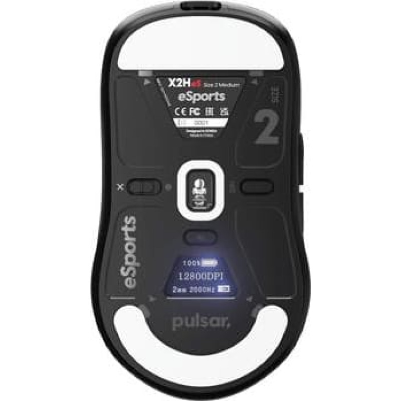 summary: PULSAR X2H v3 eS Medium Gaming Mouse. Form factor: Ambidextrous. Movement detection technology: Optical, Device interface: RF Wireless + USB Type-C, Movement resolution: 32000 DPI, Response time: 1 ms, Buttons type: Pressed buttons, Scroll type: Wheel, Acceleration (max): 50 G. Power source: Batteries/Cable. Product colour: Black