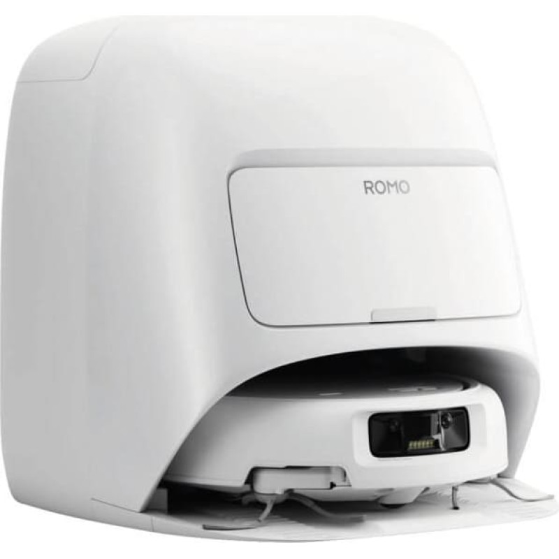 summary: DJI ROMO S (Water Tank Version). Dust container type: Bagless, Product colour: White, Shape: Round. Dust capacity (total): 0.26 L, Clean water tank capacity (base): 4 L, Dirty water tank capacity (base): 3.2 L. Battery capacity: 5000 mAh, Charging time: 2.5 h, AC input voltage: 220 - 240 V. Battery capacity: 72 Wh. Height: 98 mm, Width: 351 mm, Depth: 351 mm