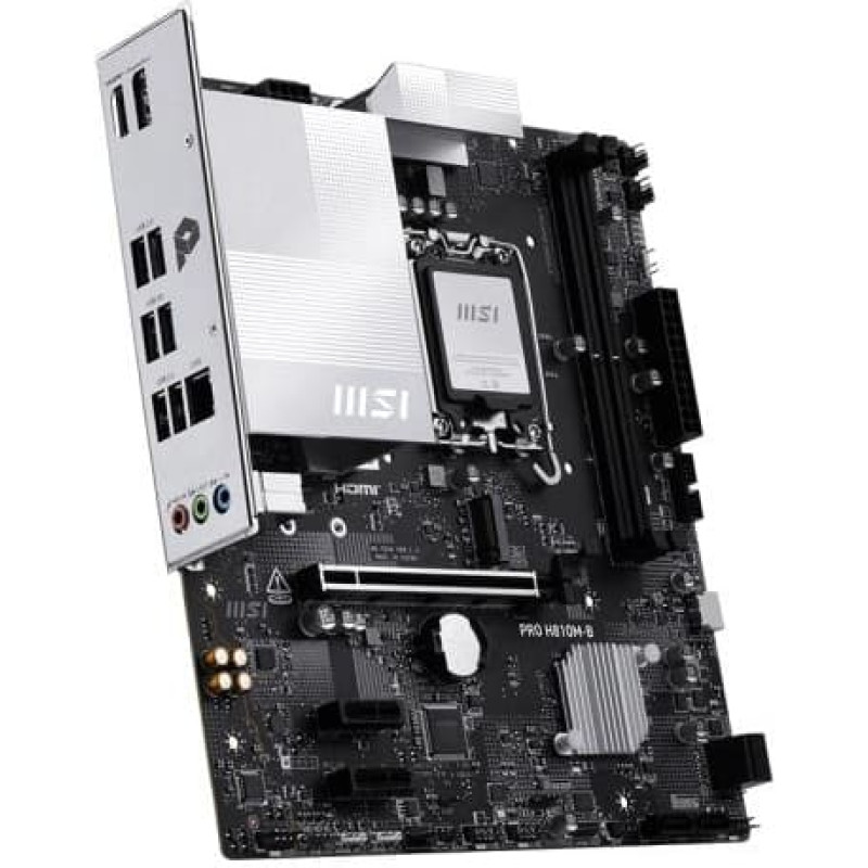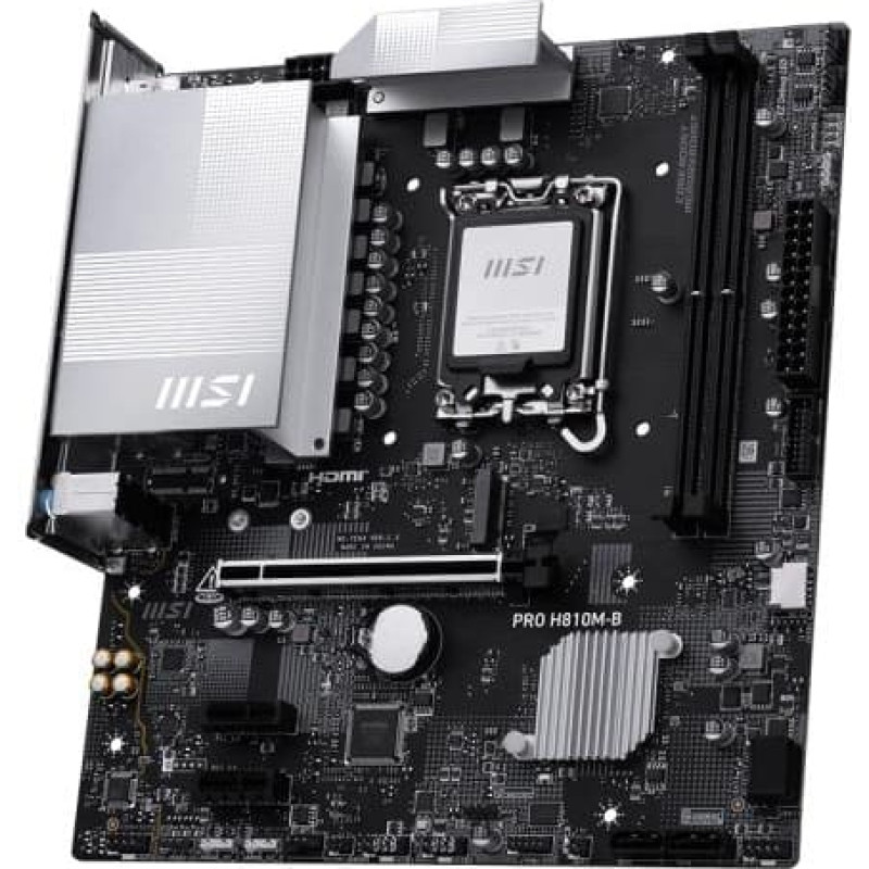 summary: MSI PRO H810M-B. Processor manufacturer: Intel, Processor socket: LGA 1851 (Socket V1), Compatible processor series: Intel Core Ultra (Series 2). Supported memory types: DDR5-SDRAM, Maximum internal memory: 128 GB, ECC сompatibility: Non-ECC. Supported storage drive interfaces: SATA III, Supported storage drive types: HDD & SSD. Ethernet interface type: 2.5 Gigabit Ethernet. Component for: PC, Motherboard form factor: micro ATX, Motherboard chipset family: Intel