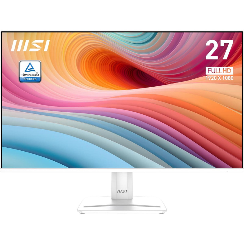 summary: MSI Pro MP275W E2. Display diagonal: 68.6 cm (27"), Display resolution: 1920 x 1080 pixels, HD type: Full HD, Display technology: LED, Response time: 4 ms, Native aspect ratio: 16:9, Viewing angle, horizontal: 178°, Viewing angle, vertical: 178°. Built-in speaker(s). VESA mounting. Product colour: White