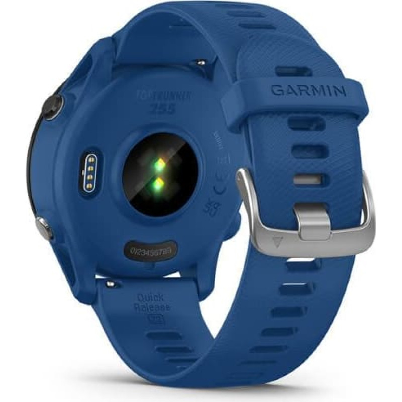 summary: Garmin Forerunner 255. Display diagonal: 3.3 cm (1.3"), Display technology: MIP, Display resolution: 260 x 260 pixels. Flash memory: 4 GB. Wi-Fi. GPS (satellite). Weight: 49 g. Band material: Silicone, Band colour: Blue, Band size: One Size