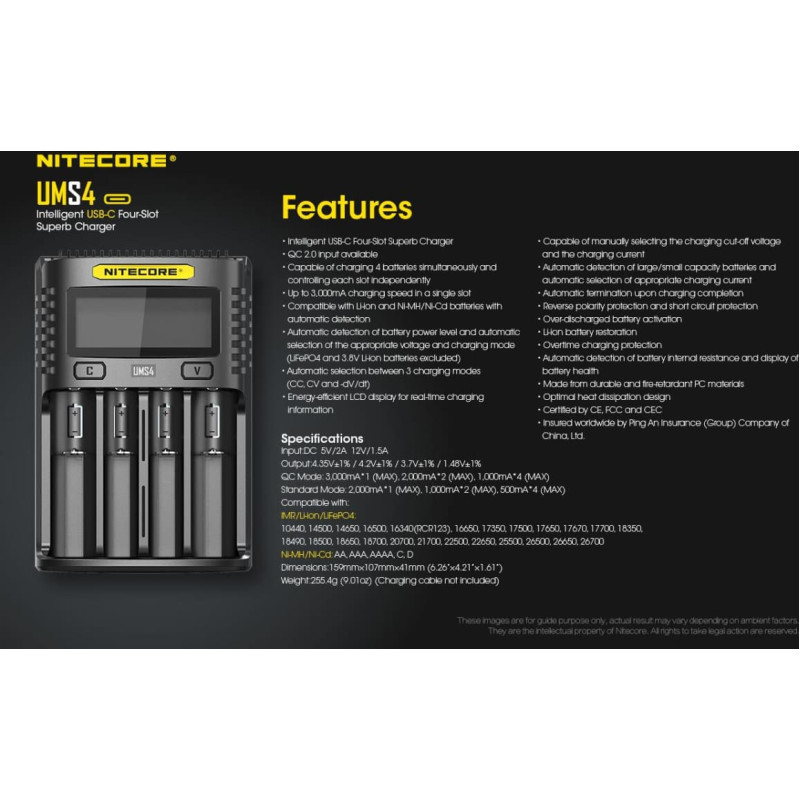 Nitecore BATTERY CHARGER 4-SLOT/UMS4 NITECORE