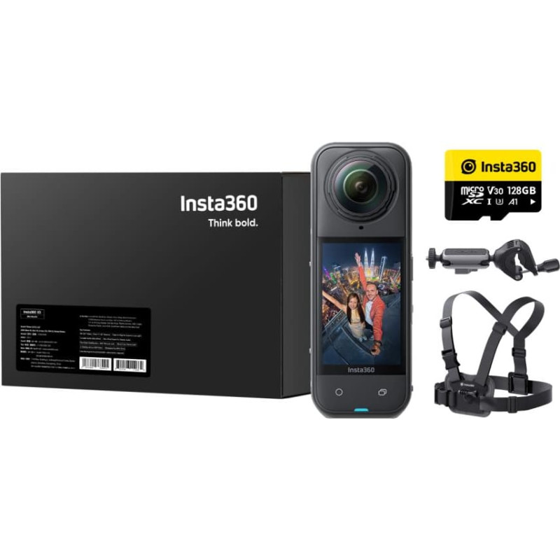 included accessories: Insta360 X5 Standard Bundle Bike Kit (New Version) 128 GB Memory Card