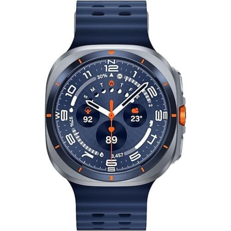 summary: Samsung Galaxy Watch Ultra. Display diagonal: 3.81 cm (1.5"), Display technology: AMOLED, Display resolution: 480 x 480 pixels, Touchscreen. RAM capacity: 2000 MB, Flash memory: 64 GB. Wi-Fi. GPS (satellite). Battery capacity: 590 mAh. Weight: 60.5 g. Band colour: Blue. Operating system installed: Wear OS