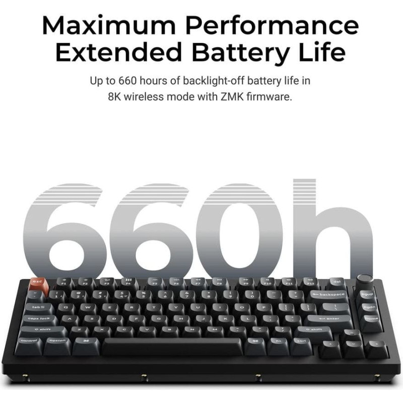 summary: Keychron V1 Ultra 8K. Keyboard form factor: 75%. Keyboard style: Straight. Connectivity technology: Wired & Wireless, Device interface: Bluetooth, Keyboard key switch: Mechanical, Keyboard layout: QWERTY. Backlight type: RGB LED. Recommended usage: Universal. Product colour: Black