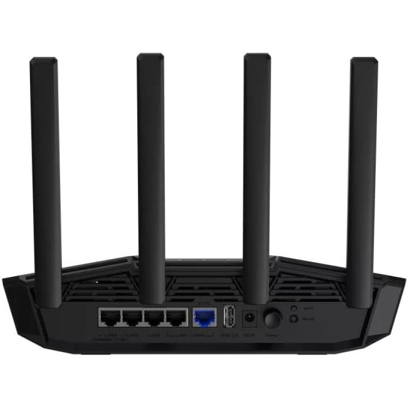 summary: ASUS TUF-BE3600. WAN connection type: RJ-45. Wi-Fi band: Dual-band (2.4 GHz / 5 GHz), Top Wi-Fi standard: Wi-Fi 7 (802.11be), WLAN data transfer rate (max): 2882 Mbit/s. Ethernet LAN interface type: Gigabit Ethernet, Ethernet LAN data rates: 1000 Mbit/s, VPN server: VPN Server IPSec VPN Server Open VPN VPN Server PPTP VPN Server WireGuard. Security algorithms: SSH, WPA-Enterprise, WPA-Personal, WPA2-Enterprise, WPA2-Personal, WPA3-Personal, WPS, Firewall security: Maximum Firewall Keyword Filter : 64 • Maximum Firewall Network Service Filter : 32 • Maximum..., NAT functionality: NAT Passthrough : PPTP Pass-Through, L2TP Pass-Through, IPSec Pass-Through, RTSP Pass-Through,.... Product type: Tabletop router, Product colour: Black, LED indicators: LAN, Power, WAN