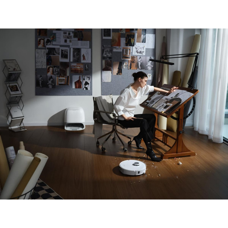 summary: Roborock Qrevo Curv. Dust container type: Combi, Product colour: White, Shape: Round. Dust capacity (vacuum cleaner): 0.325 L, Base station functions: Charging, Noise level: 61.5 dB. Battery technology: Lithium-Ion (Li-Ion), Battery capacity: 6400 mAh, Runtime: 240 min. Height: 103 mm, Width: 352 mm, Depth: 347 mm. Package width: 507 mm, Package depth: 552 mm, Package height: 534 mm