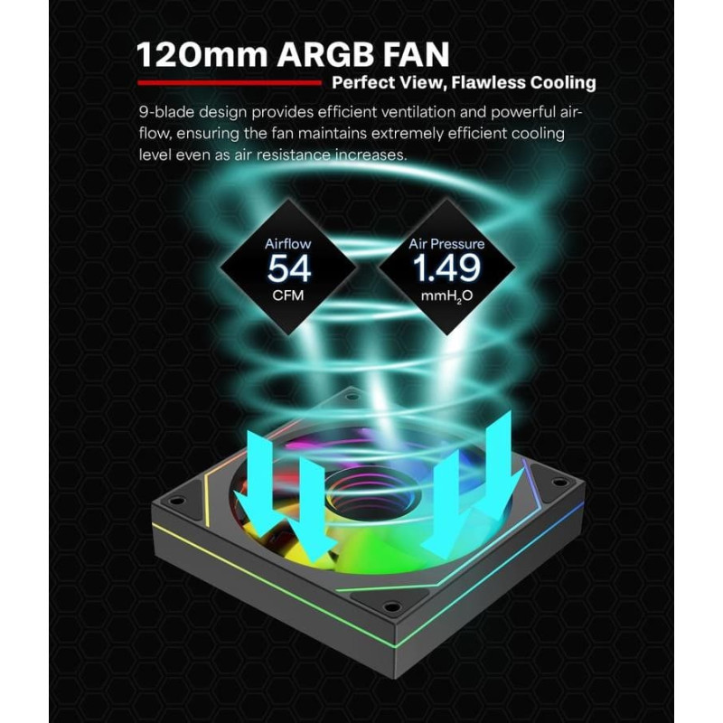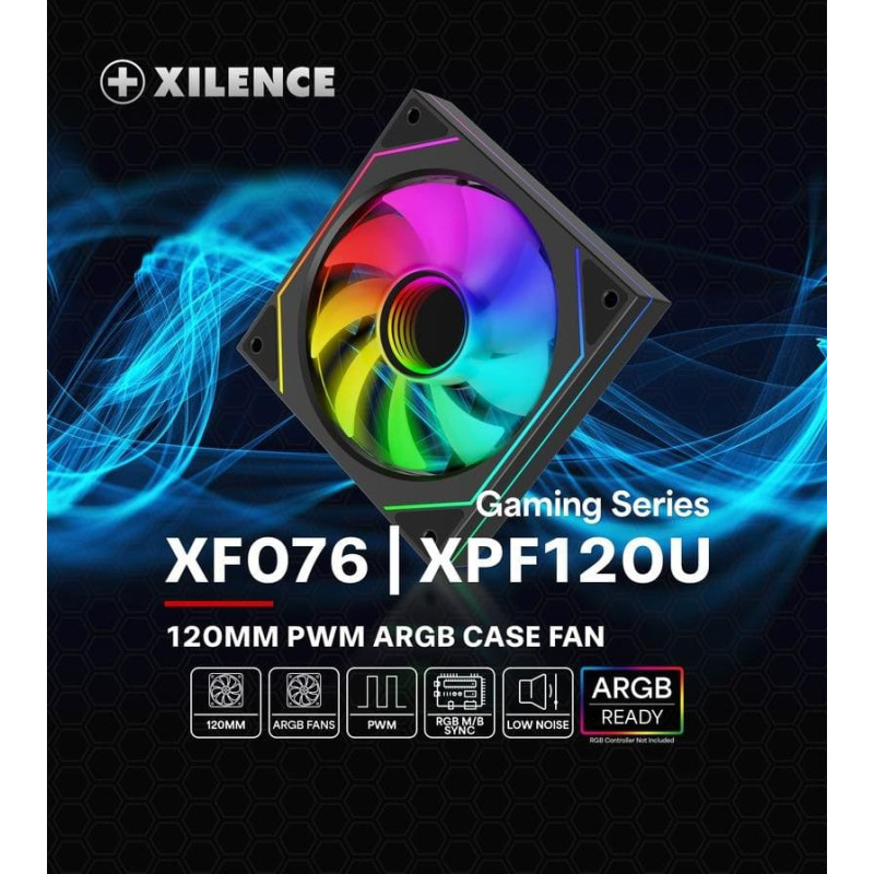 summary: Xilence Gaming Series XPF120U.ARGB. Type: Fan, Fan diameter: 12 cm, Rotational speed (min): 500 RPM, Rotational speed (max): 1800 RPM, Bearing type: Hydraulic. Voltage: 7 - 13.2 V. Width: 120 mm, Depth: 120 mm, Height: 25 mm. Product colour: Black