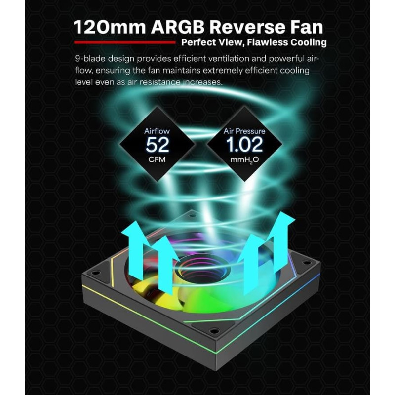 summary: Xilence Gaming Series XPF120UR.ARGB. Type: Fan, Fan diameter: 12 cm, Rotational speed (min): 500 RPM, Rotational speed (max): 1800 RPM, Bearing type: Hydraulic. Voltage: 7 - 13.2 V. Width: 120 mm, Depth: 120 mm, Height: 25 mm. Product colour: Black