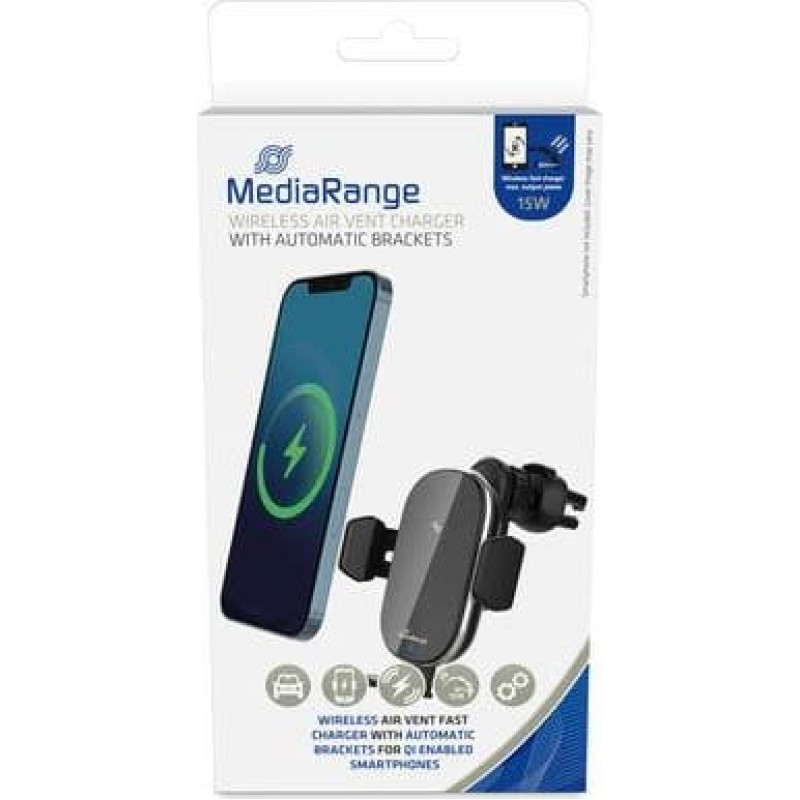 summary: MediaRange MRMA117. Charger type: Auto, Charger compatibility: Smartphone. Input voltage: 5 - 9 V. USB Type-C ports quantity: 1, Wireless charging, Fast charging, Power protection features: Over voltage, Overcharge, Overheating, Short circuit. Product colour: Black