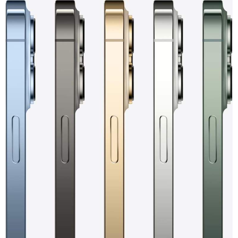 summary: Apple iPhone 13 Pro. Display diagonal: 15.5 cm (6.1"), Display resolution: 2532 x 1170 pixels. Processor family: Apple, Processor model: A15. Internal storage capacity: 128 GB. Rear camera resolution (numeric): 12 MP, Rear camera type: Triple camera. SIM card capability: Dual SIM. Operating system installed: iOS 15. Product colour: Green. Weight: 204 g