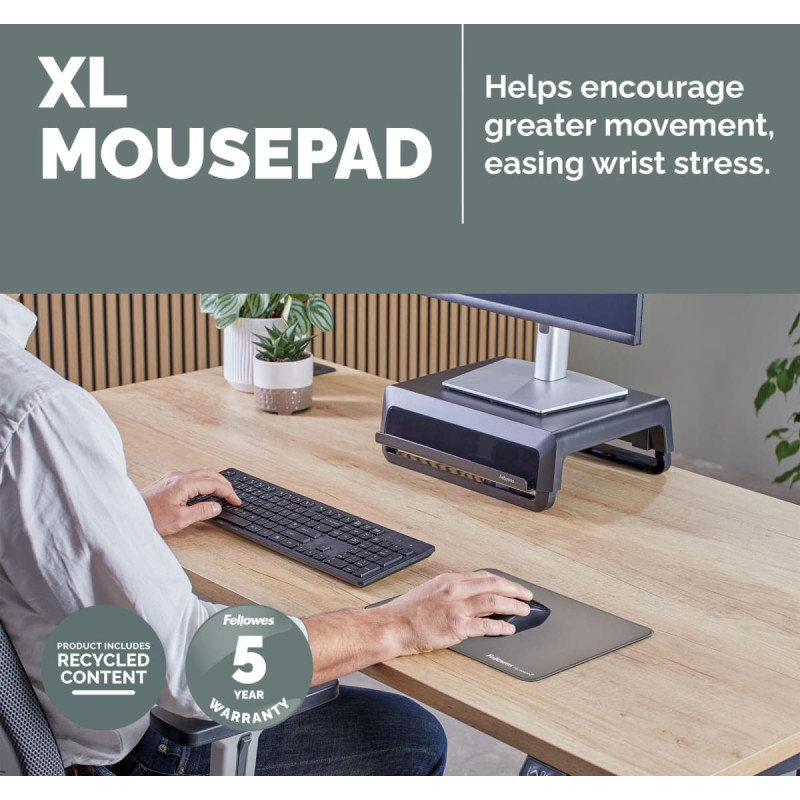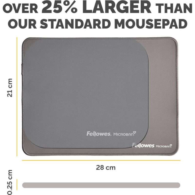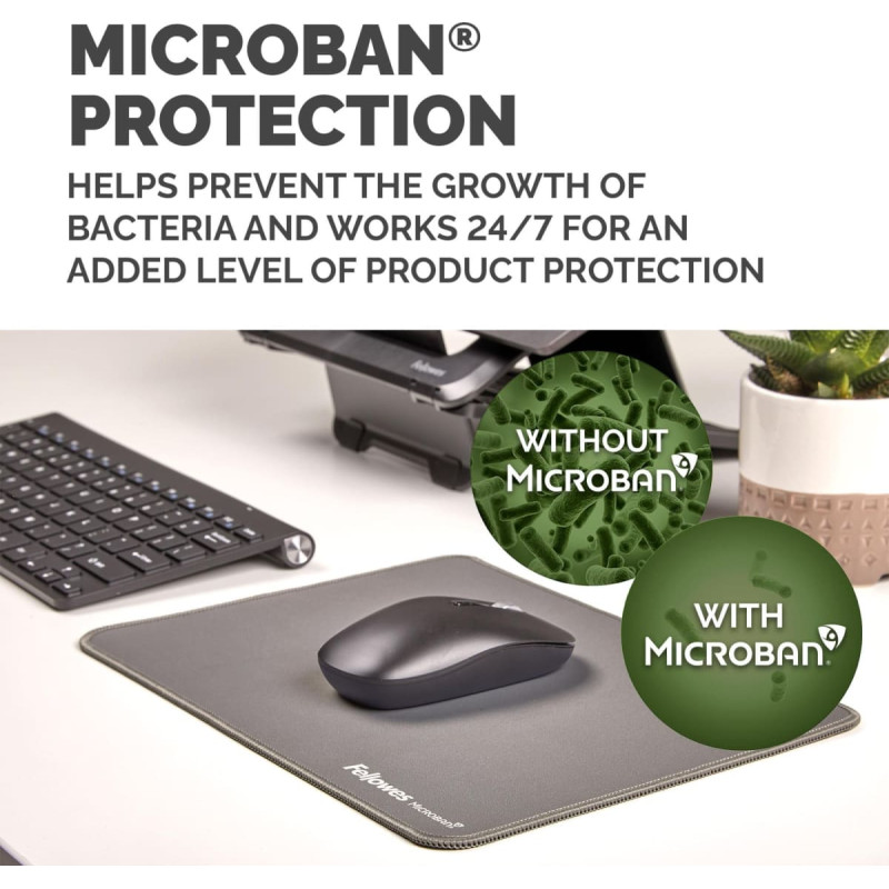 summary: Fellowes Breyta XL Mouse Mat with Non-Slip Base XL Mouse Pad with Antibacterial Protection Grey. Width: 280 mm, Depth: 210 mm. Product colour: Grey, Surface coloration: Monochromatic, Non-slip base