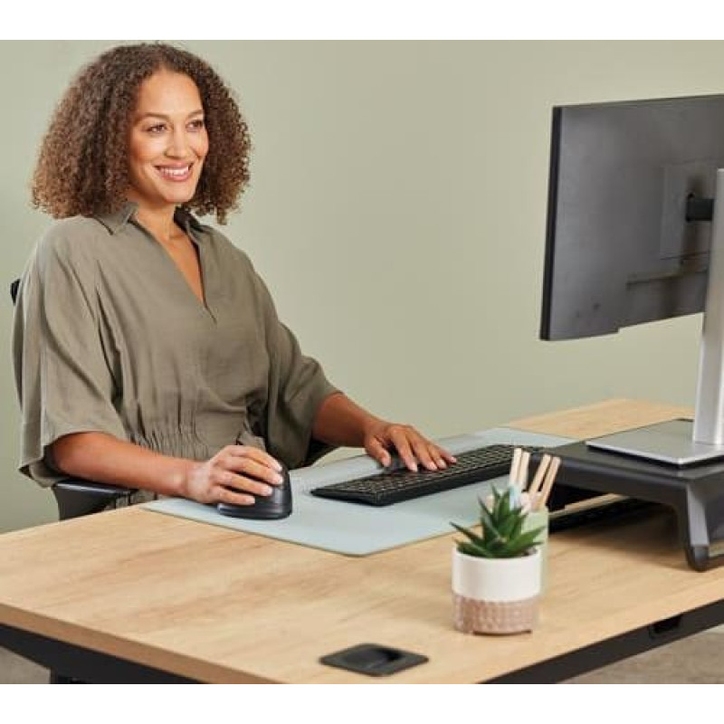 summary: Fellowes Vertical Wireless Mouse Breyta Plus+ Ergonomic Right Handed Vertical Mouse with Antibacterial Protection Large. Form factor: Right-hand, Vertical design. Movement detection technology: Optical, Device interface: Bluetooth + USB Type-C, Movement resolution: 2400 DPI, Scroll type: Wheel. Power source: Batteries/Cable. Product colour: Black