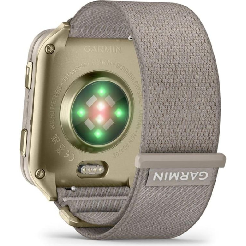 summary: Garmin Venu X1. Display diagonal: 5.08 cm (2"), Display technology: AMOLED, Display resolution: 448 x 486 pixels, Touchscreen. Wi-Fi. GPS (satellite). Weight: 34 g. Band material: Nylon, Band colour: Grey