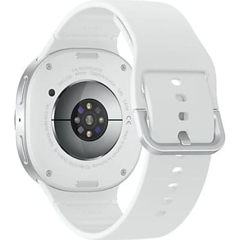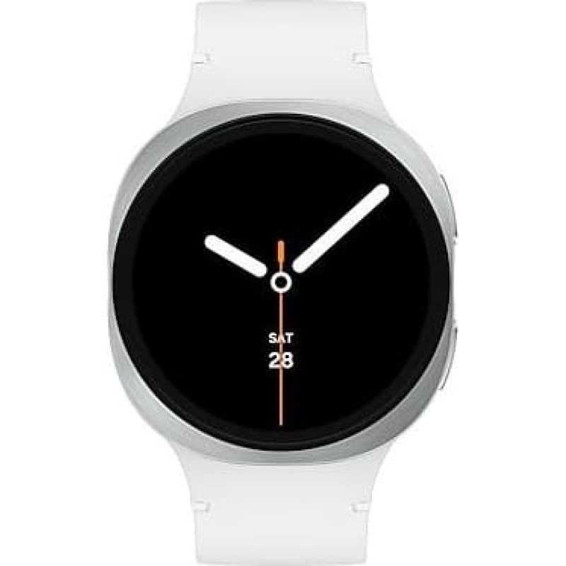 summary: Samsung Galaxy Watch 8. Display diagonal: 3.81 cm (1.5"), Display technology: AMOLED, Display resolution: 480 x 480 pixels, Touchscreen. RAM capacity: 2000 MB, Flash memory: 32 GB. Wi-Fi. GPS (satellite). Battery capacity: 435 mAh. Weight: 34 g. Band colour: White. Operating system installed: Wear OS