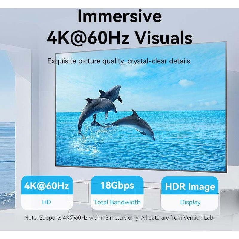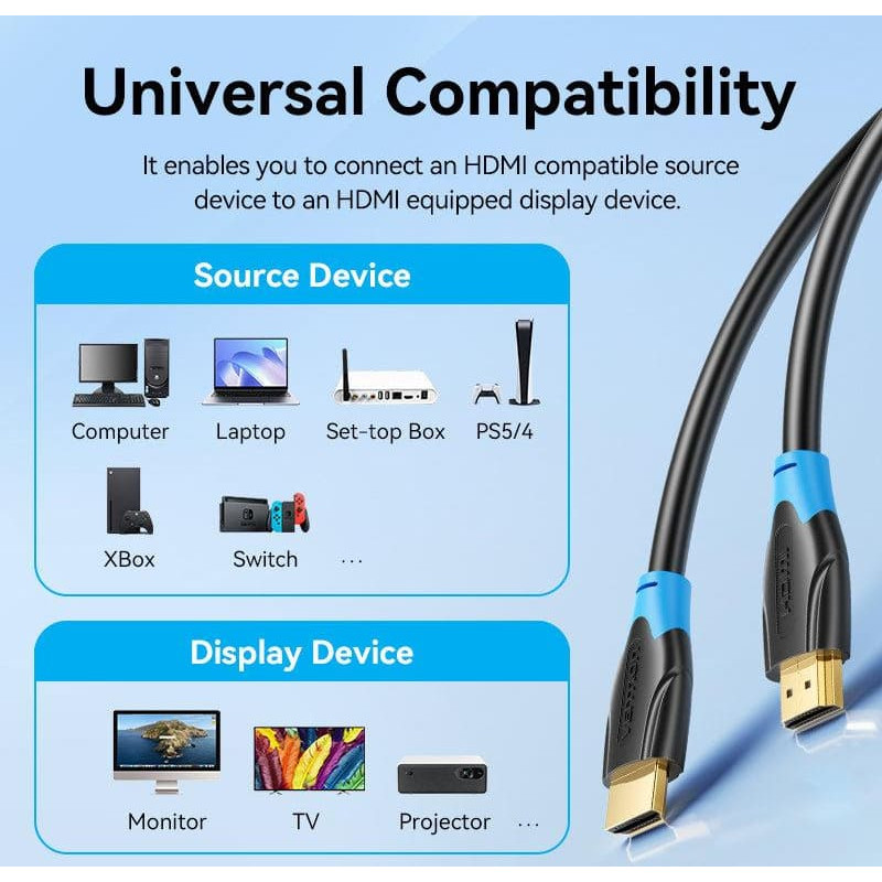 summary: Vention AACBN. Cable length: 15 m, Connector 1: HDMI Type A (Standard), Connector 1 gender: Male, Connector 2: HDMI Type A (Standard), Connector 2 gender: Male, Connector contacts plating: Gold, HDMI version: 2.0, 3D, Data transfer rate: 18 Gbit/s, Audio Return Channel (ARC), Product colour: Black