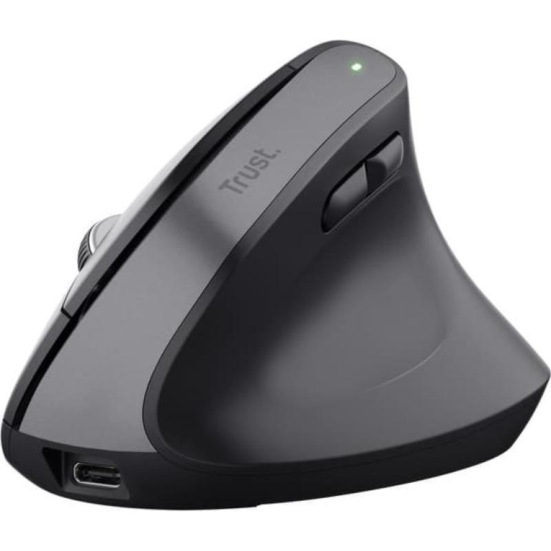 summary: Trust Bayo+. Form factor: Right-hand, Vertical design. Movement detection technology: Optical, Device interface: RF Wireless + Bluetooth, Movement resolution: 2400 DPI, Buttons quantity: 6, Scroll type: Wheel. Power source: Batteries. Works on any surface. Product colour: Black