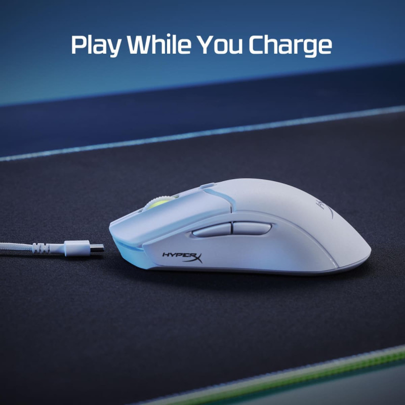 summary: Pulsefire Haste 2 - Wireless Gaming Mouse (White). Form factor: Ambidextrous. Device interface: RF Wireless + Bluetooth, Movement resolution: 26000 DPI, Buttons type: Pressed buttons, Buttons quantity: 6, Scroll type: Wheel, Acceleration (max): 50 G. Power source: Batteries. Product colour: White