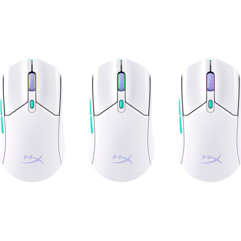 summary: HyperX Pulsefire Haste 2 Core Wls - Gaming Mouse (Wht/Grn/Pur). Form factor: Ambidextrous. Device interface: USB Type-A, Movement resolution: 3600 DPI, Buttons type: Pressed buttons, Buttons quantity: 6, Scroll type: Wheel, Acceleration (max): 35 G. Power source: Batteries. Product colour: White