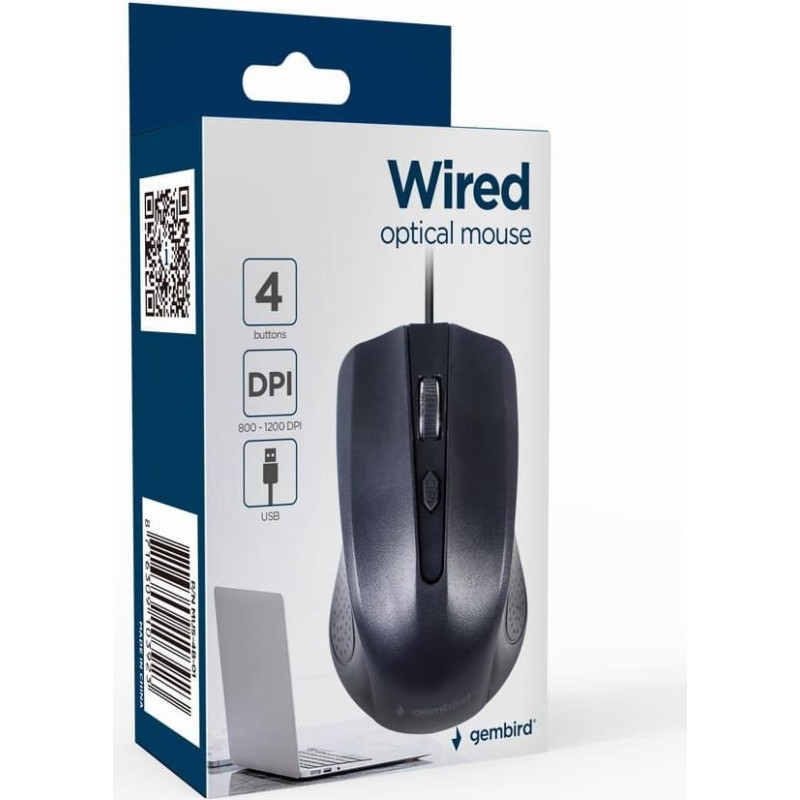 summary: Gembird MUS-4B-01. Form factor: Ambidextrous. Movement detection technology: Optical, Device interface: USB Type-A, Movement resolution: 1200 DPI, Buttons type: Pressed buttons, Buttons quantity: 4, Scroll type: Wheel. Power source: Cable. Product colour: Black