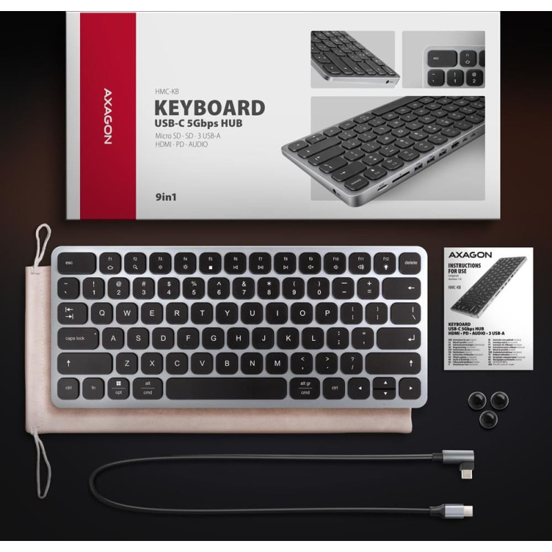 Axagon KEYBOARD + I/O HUB 9IN1/0.6M HMC-KB-US AXAGON