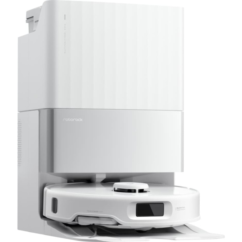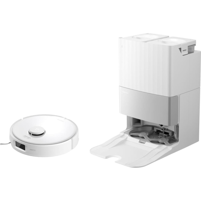 summary: Roborock Qrevo Edge 5V1. Dust container type: Dust bag, Product colour: White, Shape: Round. Dust capacity (vacuum cleaner): 0.325 L, Noise level: 60.4 dB, Dust capacity (base): 2.7 L. Battery technology: Lithium-Ion (Li-Ion), Battery capacity: 5200 mAh, Runtime: 190 min. Height: 97.9 mm, Width: 352 mm, Depth: 352 mm. Package width: 560 mm, Package depth: 389 mm, Package height: 442 mm
