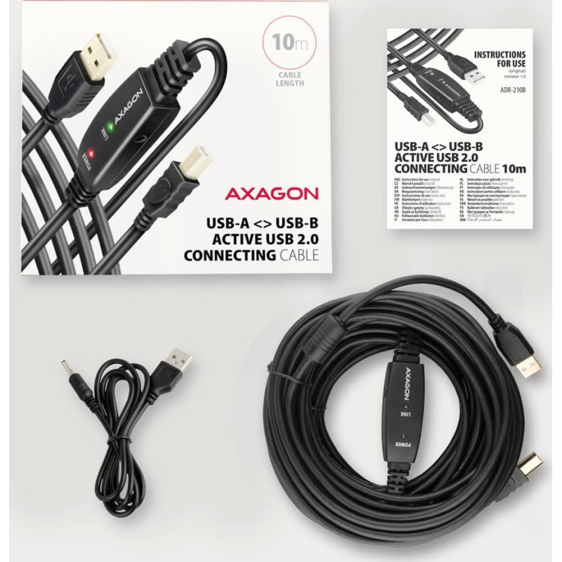 Axagon CABLE USB2.0 A-M/B-M ACTIVE/10M ADR-210B AXAGON