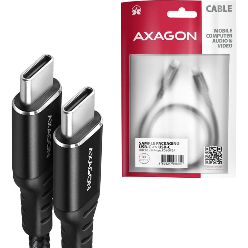 Axagon CABLE USB-C TO USB-C 2M 60W/HQ BLACK BUCM-CM20AB AXAGON