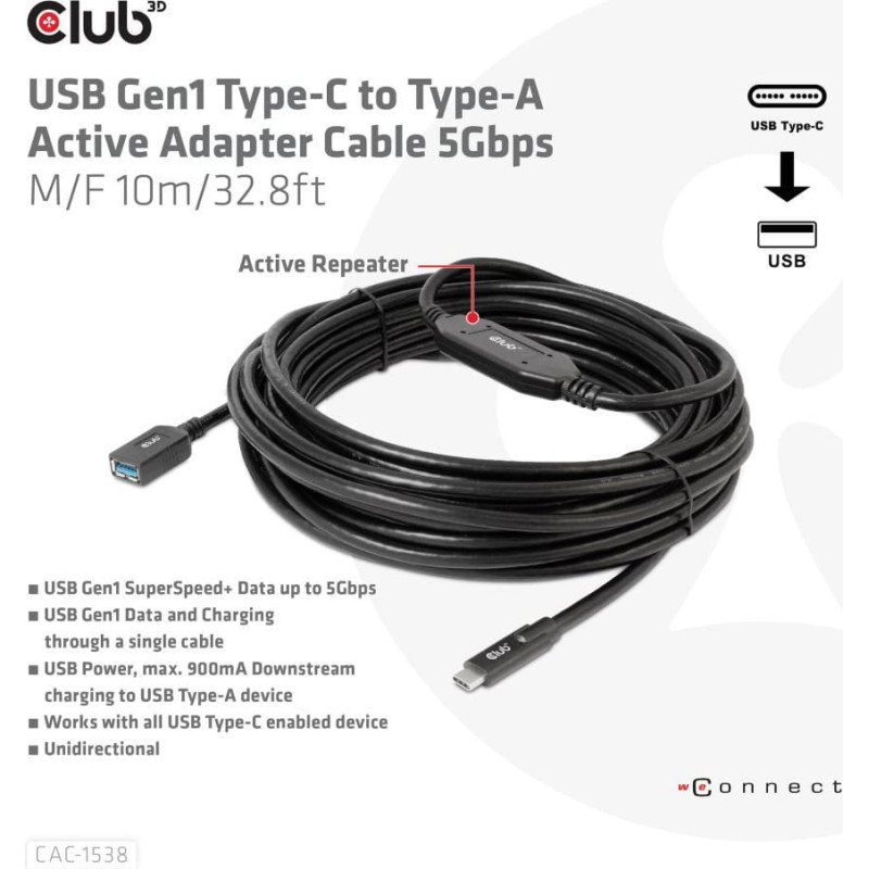 Club3D CABLE USB-C TO USB 10M/M/F CAC-1538 CLUB3D