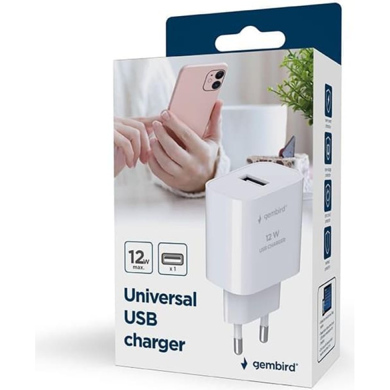 Gembird CHARGER USB UNIVERSAL 2.4A/BLACK TA-UC-1A12-01-BK GEMBIRD