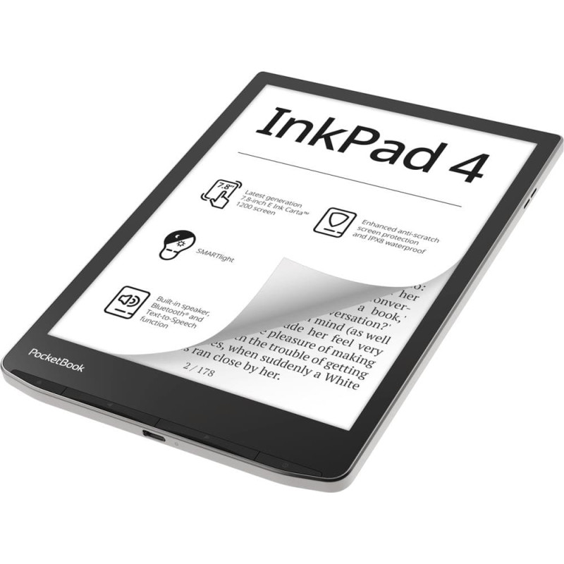 Pocketbook E-Reader|POCKETBOOK|InkPad 4|7.8"|1872x1404|1xAudio-Out|1xUSB-C|Micro SD|Wireless LAN|Bluetooth|PB743G-U-WW