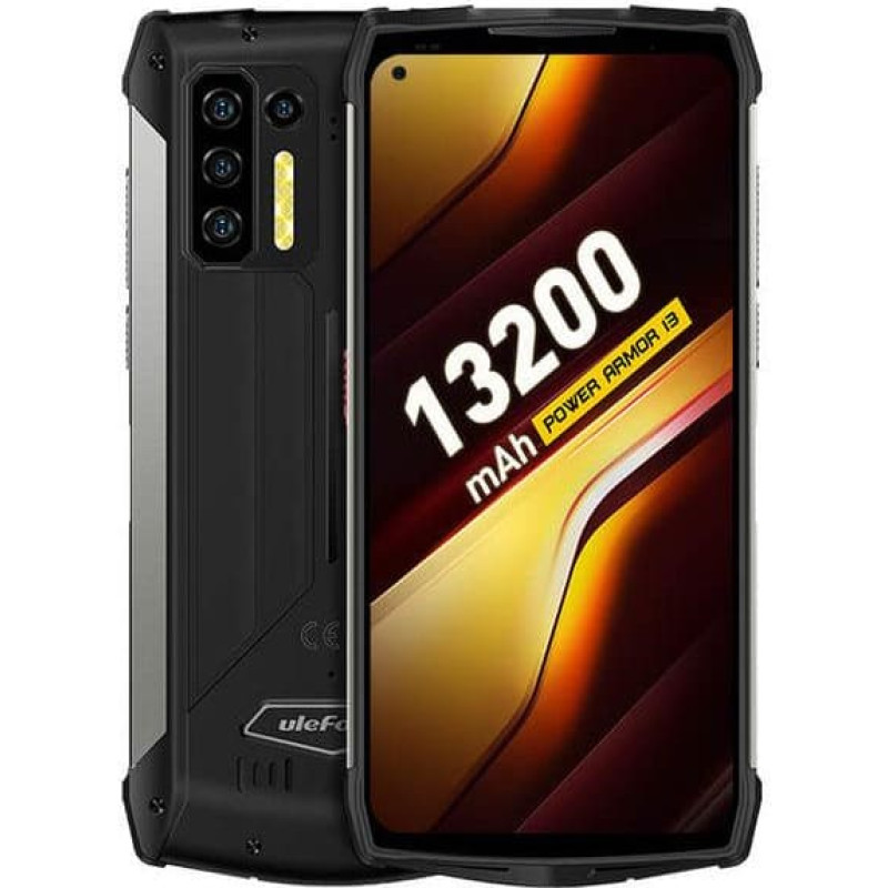 summary: Ulefone Power Armor 13. Display diagonal: 17.3 cm (6.81"), Display resolution: 1080 x 2400 pixels. Processor family: MediaTek, Processor model: Helio G95. RAM capacity: 8 GB, Internal storage capacity: 128 GB. Rear camera resolution (numeric): 48 MP, Rear camera type: Quad camera. SIM card capability: Dual SIM. Battery capacity: 13200 mAh. Product colour: Black. Weight: 492 g