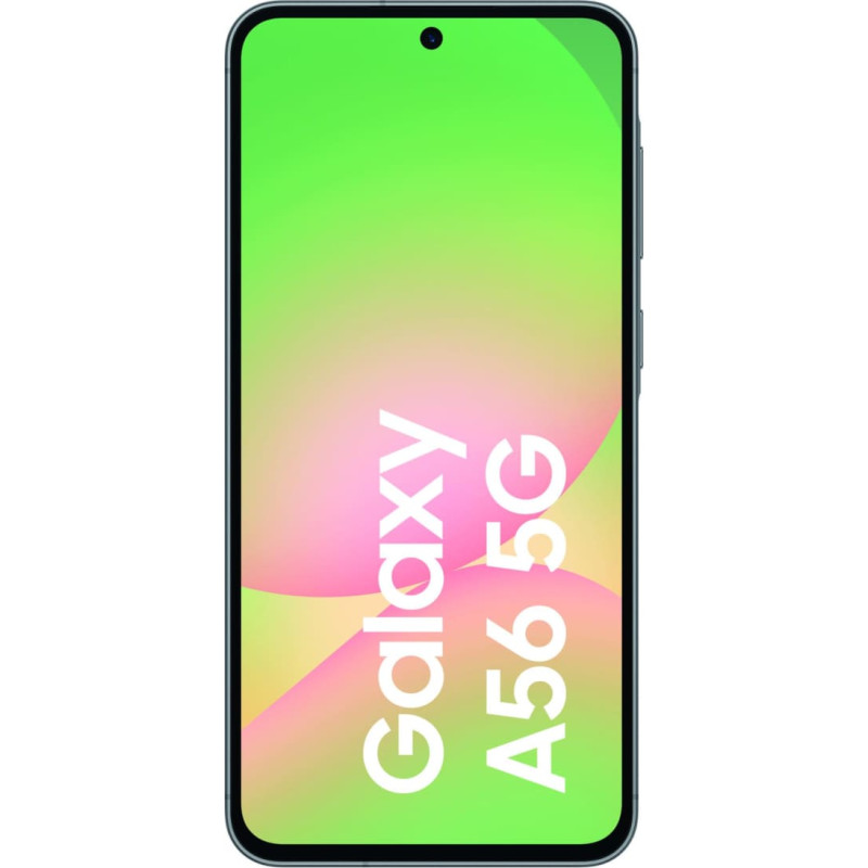 summary: Samsung Galaxy A56. Display diagonal: 17 cm (6.7"), Display resolution: 1080 x 2340 pixels. Processor frequency: 2.6 GHz. RAM capacity: 8 GB, Internal storage capacity: 128 GB. Rear camera resolution (numeric): 50 MP, Rear camera type: Triple camera. SIM card capability: Dual SIM. Battery capacity: 5000 mAh. Product colour: Graphite. Weight: 198 g