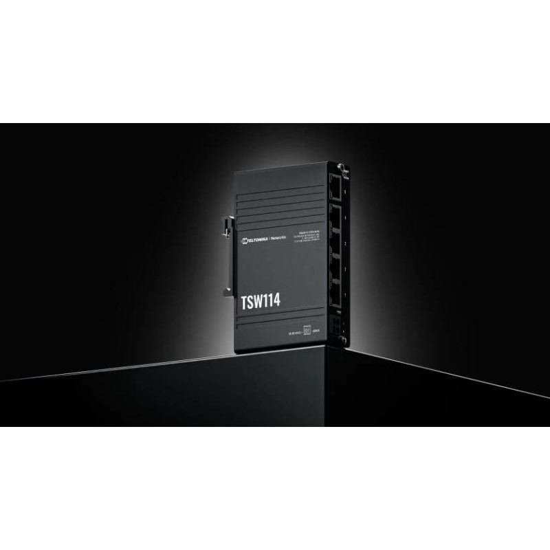 summary: Teltonika TSW114000000. Switch type: Unmanaged. Basic switching RJ-45 Ethernet ports type: Gigabit Ethernet (10/100/1000), Basic switching RJ-45 Ethernet ports quantity: 5. MAC address table: 2000 entries. Networking standards: IEEE 802.3, IEEE 802.3az, IEEE 802.3u. Wall mountable