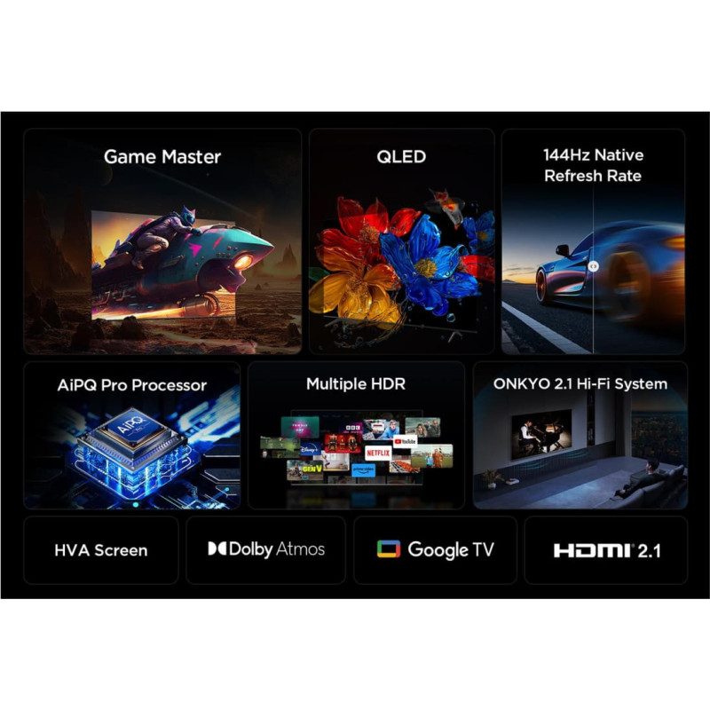 tcl technologies (av/tv): 288Hz Game Accelerator/AiPQ Processor/Bluetooth/Chromecast Built-In/Dolby Atmos®/Dolby VisionT/HDR (High Dynamic Range)/Onkyo Sound/T-cast